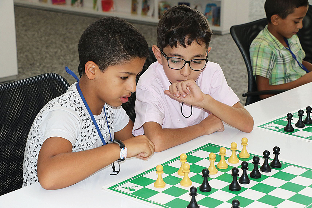 Houri Mohamed, qui travaille au sein du groupe OCP depuis 14 ans, est quant à lui passionné de jeu d’échecs. Fraichement élu à la tête du club “Al Farass Al Assil”, fondé en 1992 à Khouribga, l’homme est également impliqué dans les activités de la médiathèque. Avec d’autres membres du club, il vient dispenser des formations sur place à ceux souhaitent s’initier aux échecs. L’atelier est ouvert à tous les âges. Pour les enfants, l’objectif est de “développer leurs capacités mentales à travers le jeu et la stratégie”, explique Houri Mohamed. La médiathèque aussi des compétitions. “Récemment, une compétition a opposé les membres de notre club à ceux du club ‘Michâal Hazim’ de Casablanca. Il y avait une quarantaine de participants dans une ambiance sportive qui a plu à tout le monde”, se rappelle le président du club khouribgui. “Toutes les conditions sont là pour faire en sorte que la collaboration avec la média thèque donne lieu à d’autres compétitions tout aussi réussies,” estime-t-il. Son implication témoigne de la dynamique insufflée au sein de la médiathèque, notamment grâce aux salariés du groupe OCP, premier employeur de la région, et qui permet à ses collaborateurs — à l’initiative du présidentdirecteur général du groupe Mostafa Terrab — de dégager une à quatre semaines par an pour effectuer du volontariat au service de leur communauté. C’est ce que confirme Ait Brahim Lhoussaine, volontaire de Act4Community dans le pôle culture : “La dynamique de la médiathèque est intimement liée à celle du programme de volontariat Act4community.